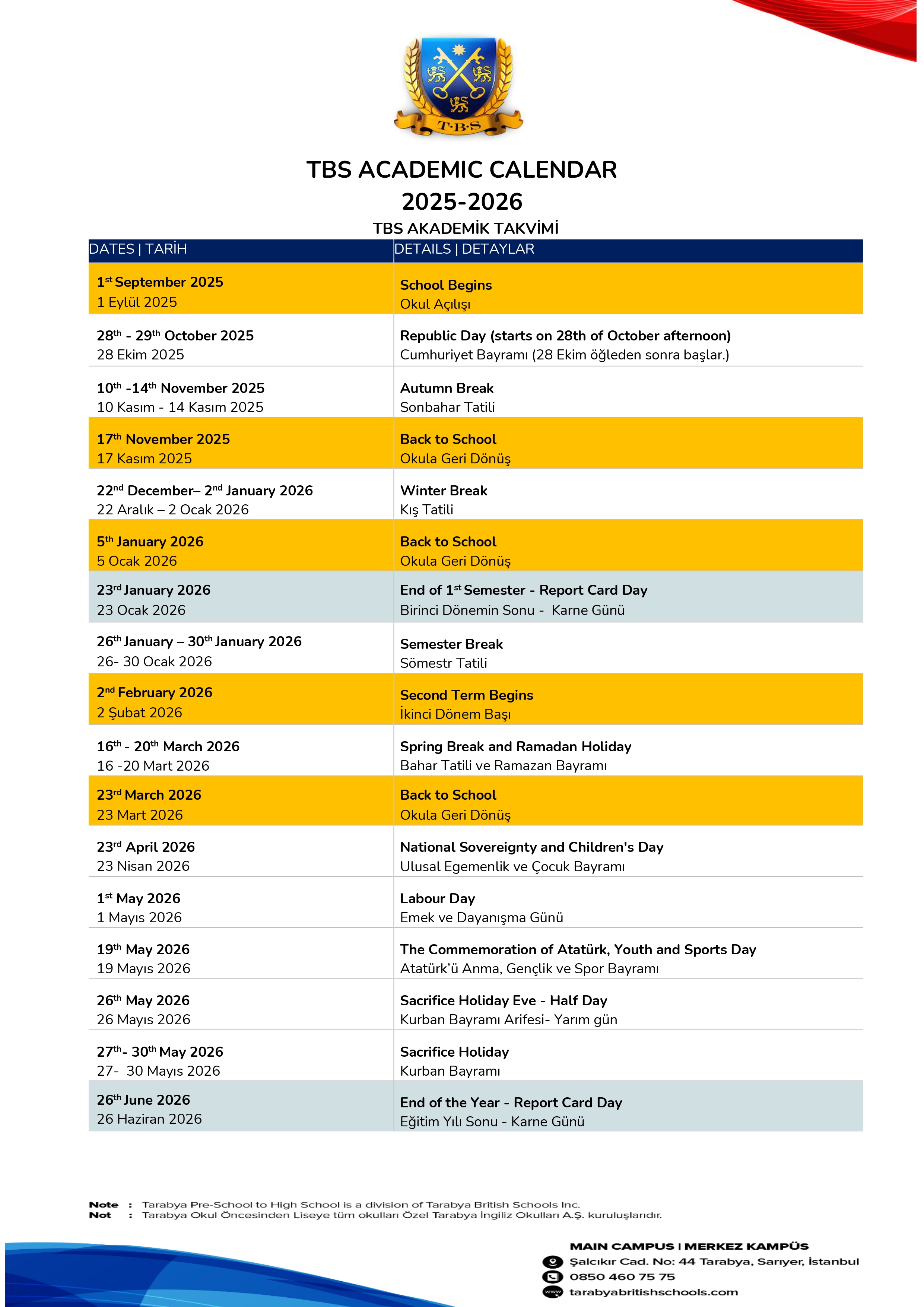 TBS Academic Calendar